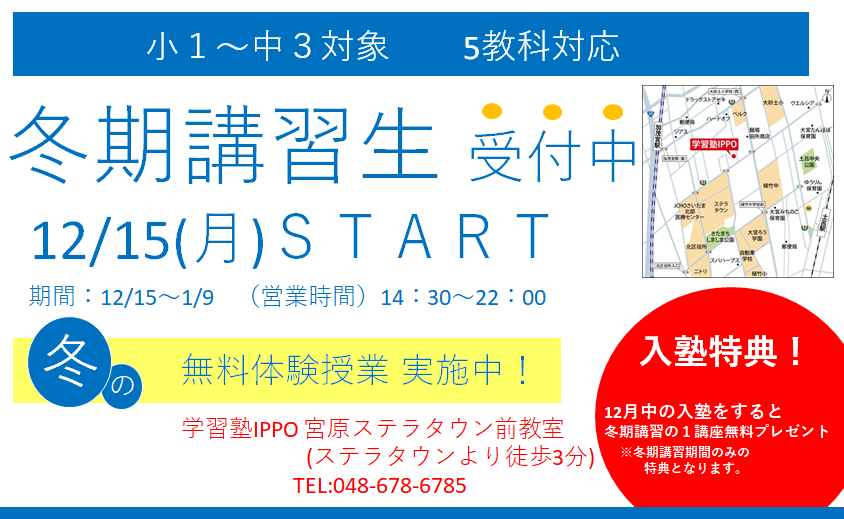 学習塾IPPO宮原ステラタウン前教室の塾長松林と申します。2022年2月より「小学生~中学生対象」の学習塾を開校致しました。ステラタウンより徒歩3分くらいの所にあります。